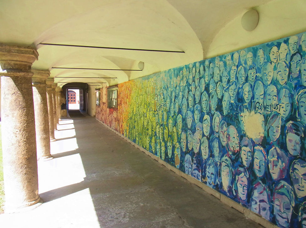 教会の中庭・東側、東西の通り抜け機能がある壁面に描かれている顔・顔・顔・・・ 意味は? 11:11